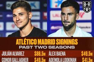 5年冠军荒!马竞近两赛季引援花费4.87亿美元,目前落后榜首10分体育资讯02月04日讯西甲冬窗关闭,马竞引进了卢克曼、门多萨和奥贝德·巴尔加斯。据BR统计,马竞过去两个赛季引援花费总计达4.87亿美元,引进了阿尔瓦雷斯、加拉格尔、勒诺尔芒、汉茨科等人。不过,马竞近两