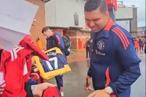 表情亮了!卡塞米罗给曼联球迷签名,得知对方喜欢加纳乔卡塞米罗:你喜欢加纳乔吗?球迷:是的卡塞米罗:🤧